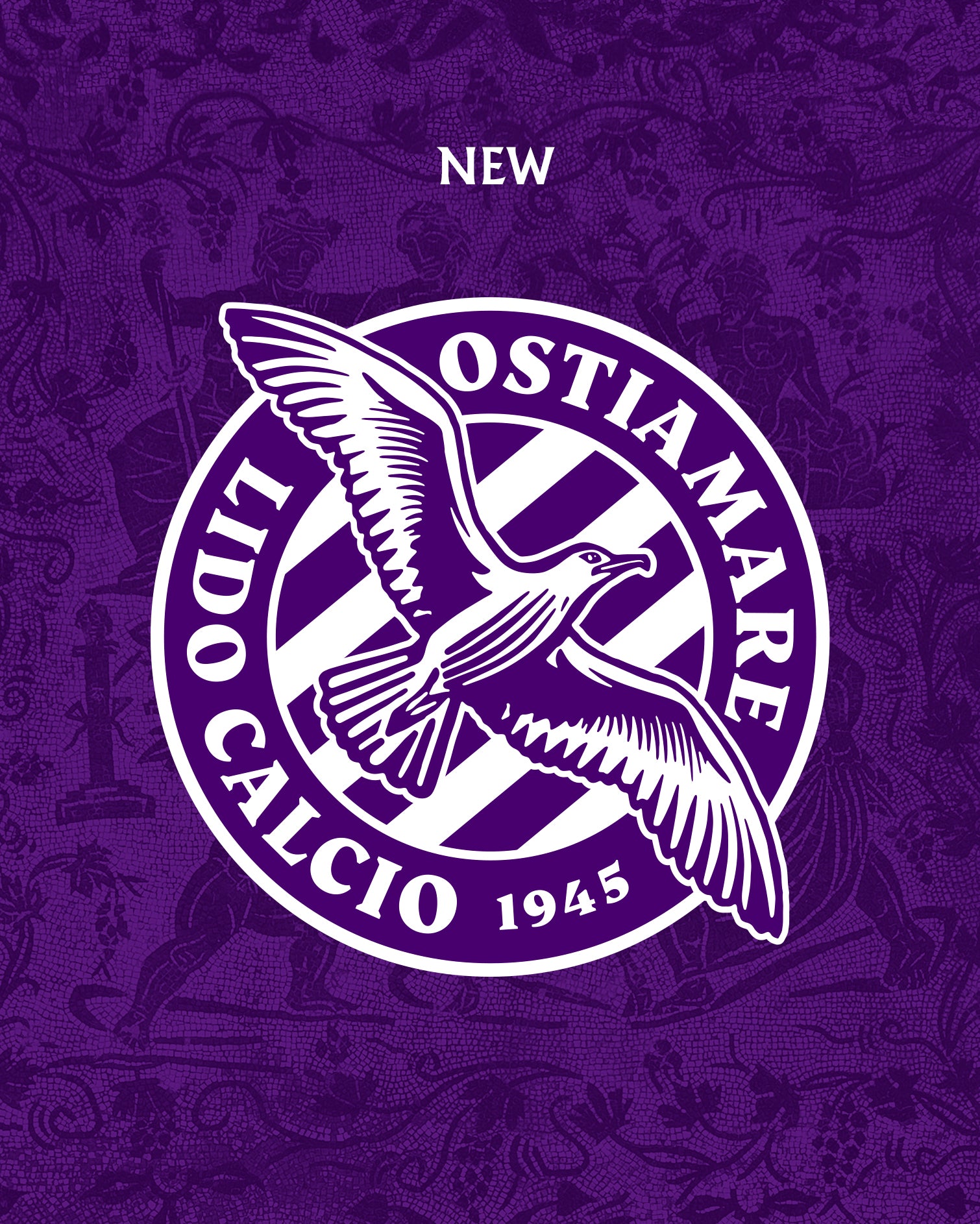 The seagull divides the new circular coat of arms into two parts to insert the club's full name: Ostiamare Lido Calcio 1945.