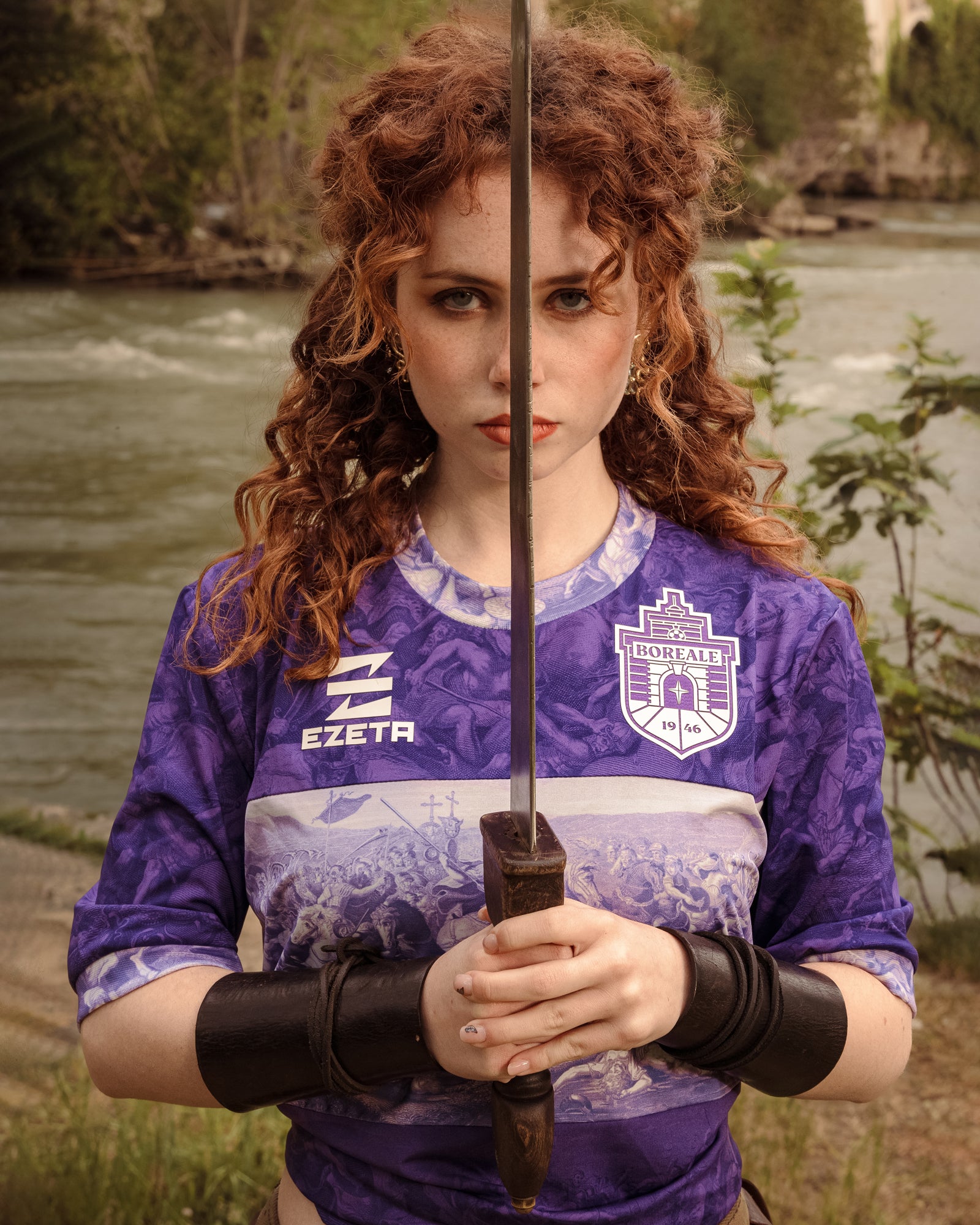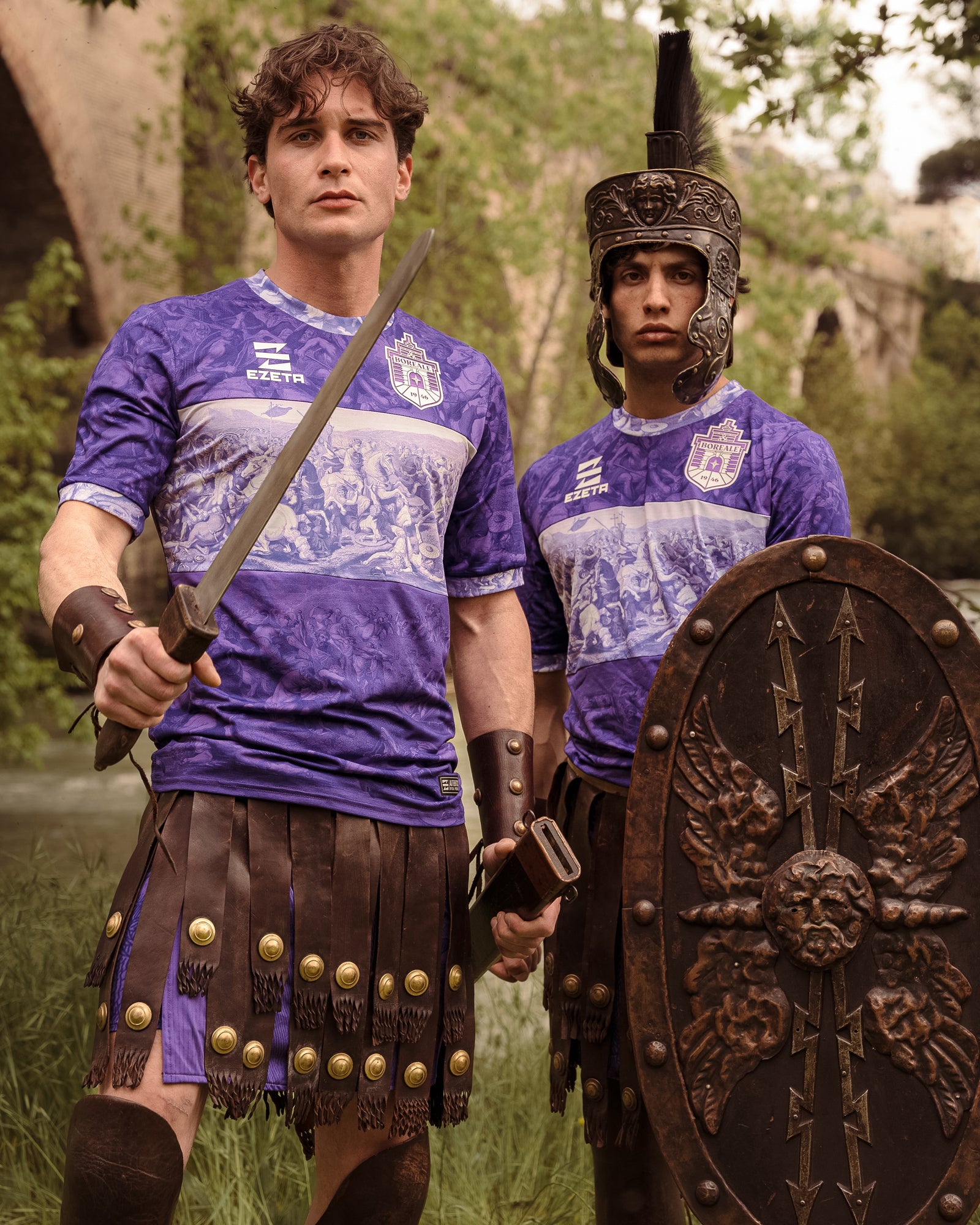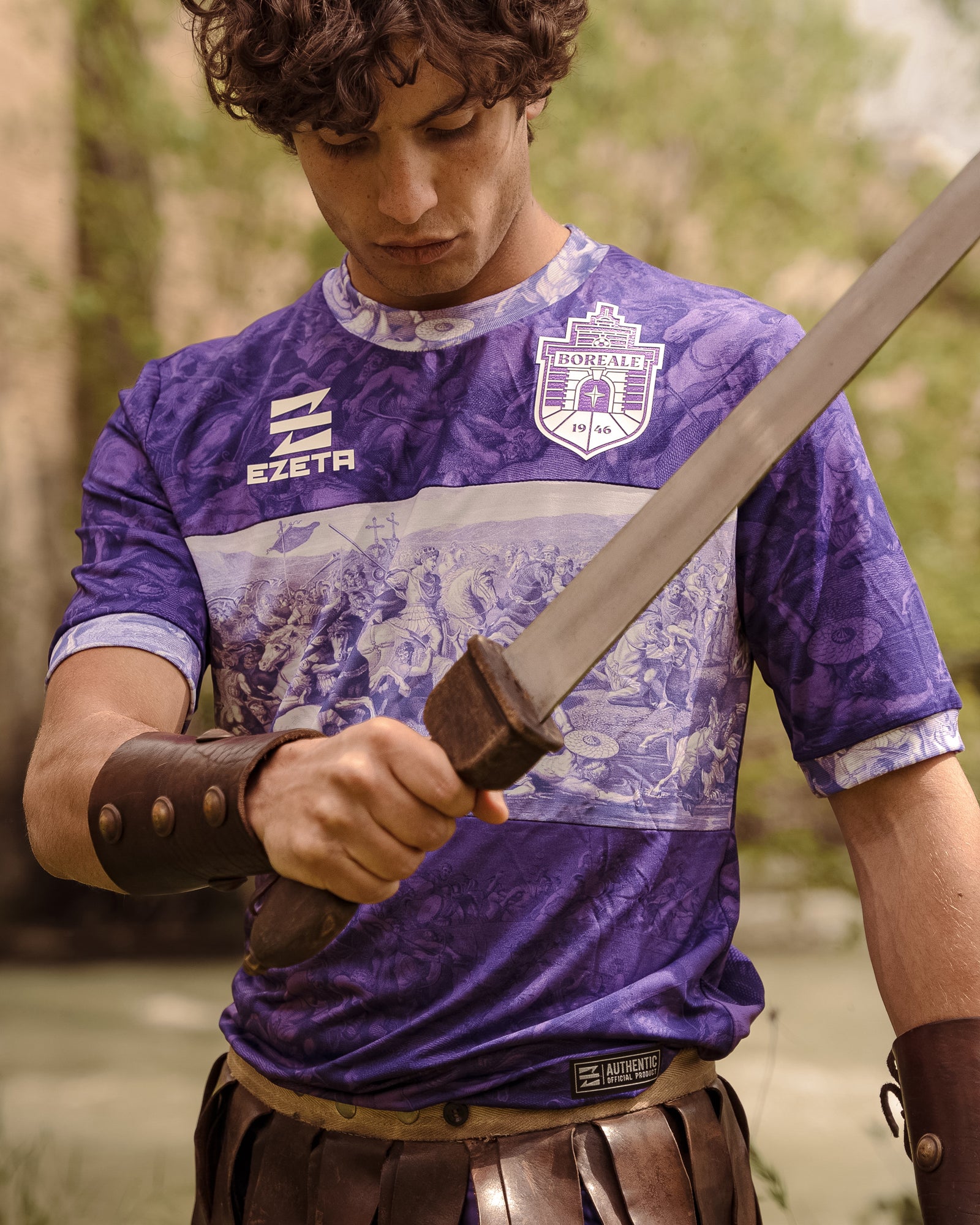 La maglia home è ispirata alla battaglia di Ponte Milvio, combattuta nel 312 d.C., che segnò la vittoria di Costantino su Massenzio e il trionfo del cristianesimo sul mondo pagano.